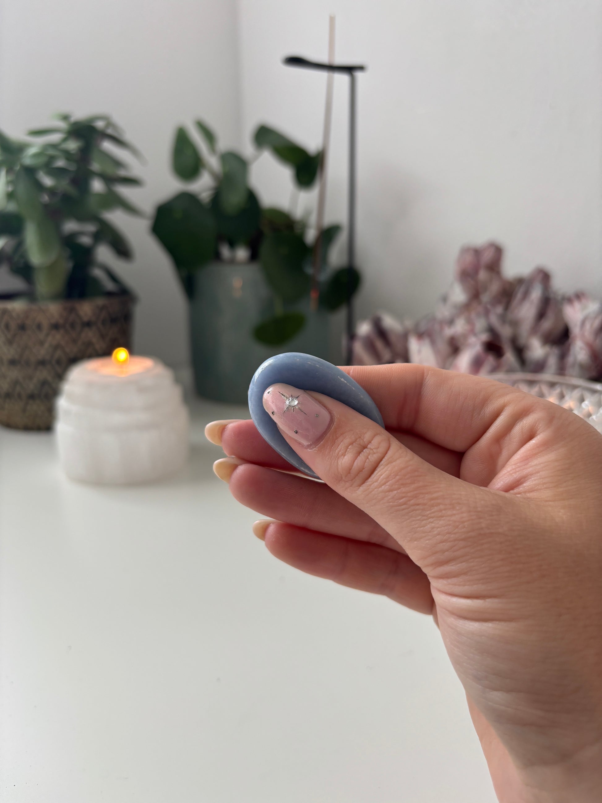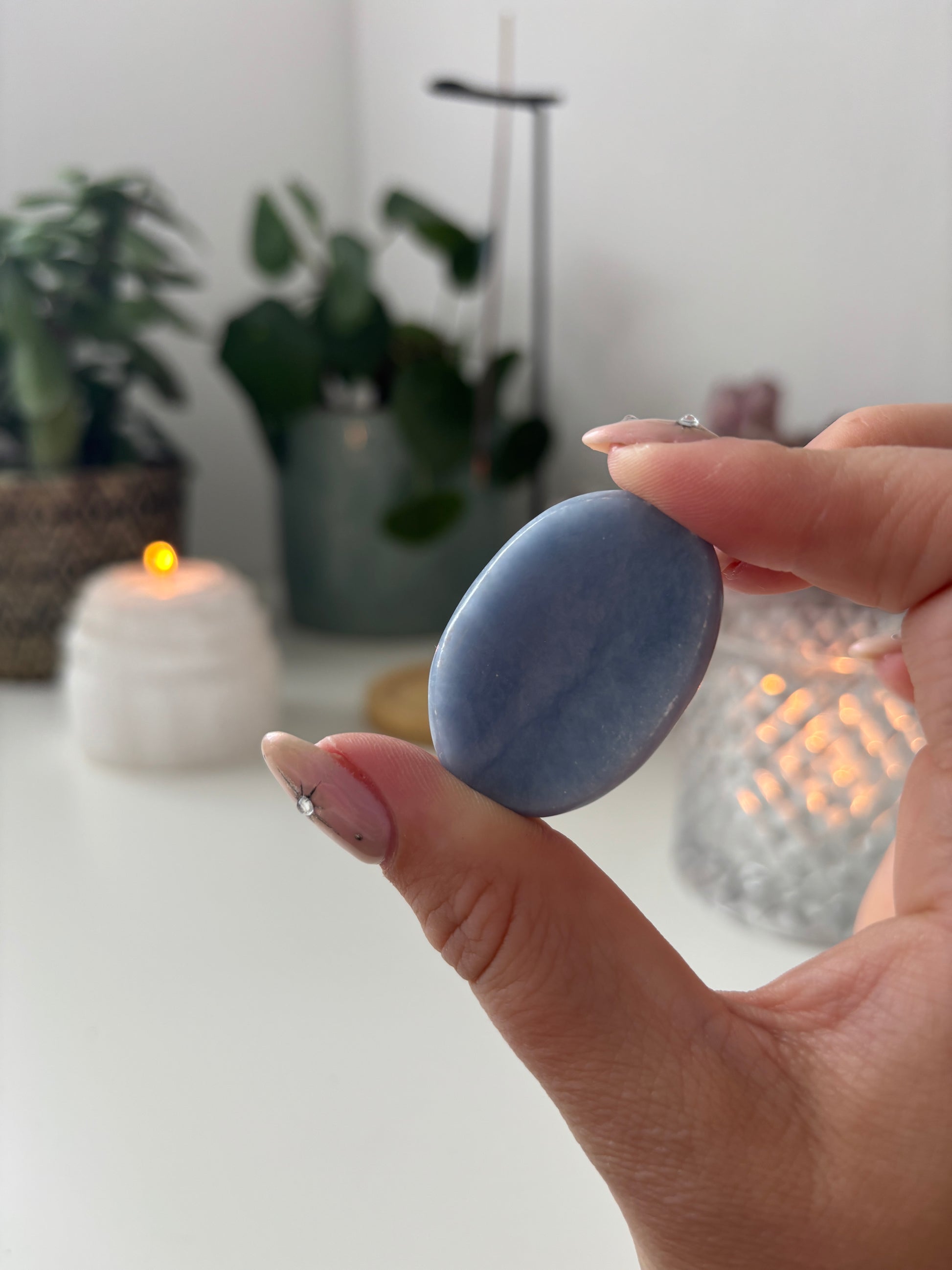 Cool, calm, sky-blue. Angelite is the voice of peace in your palm - a tangible reminder that your angel team is near, always waiting for you to ask. A stone for prayer, meditation, or moments you need reassurance you are guided.